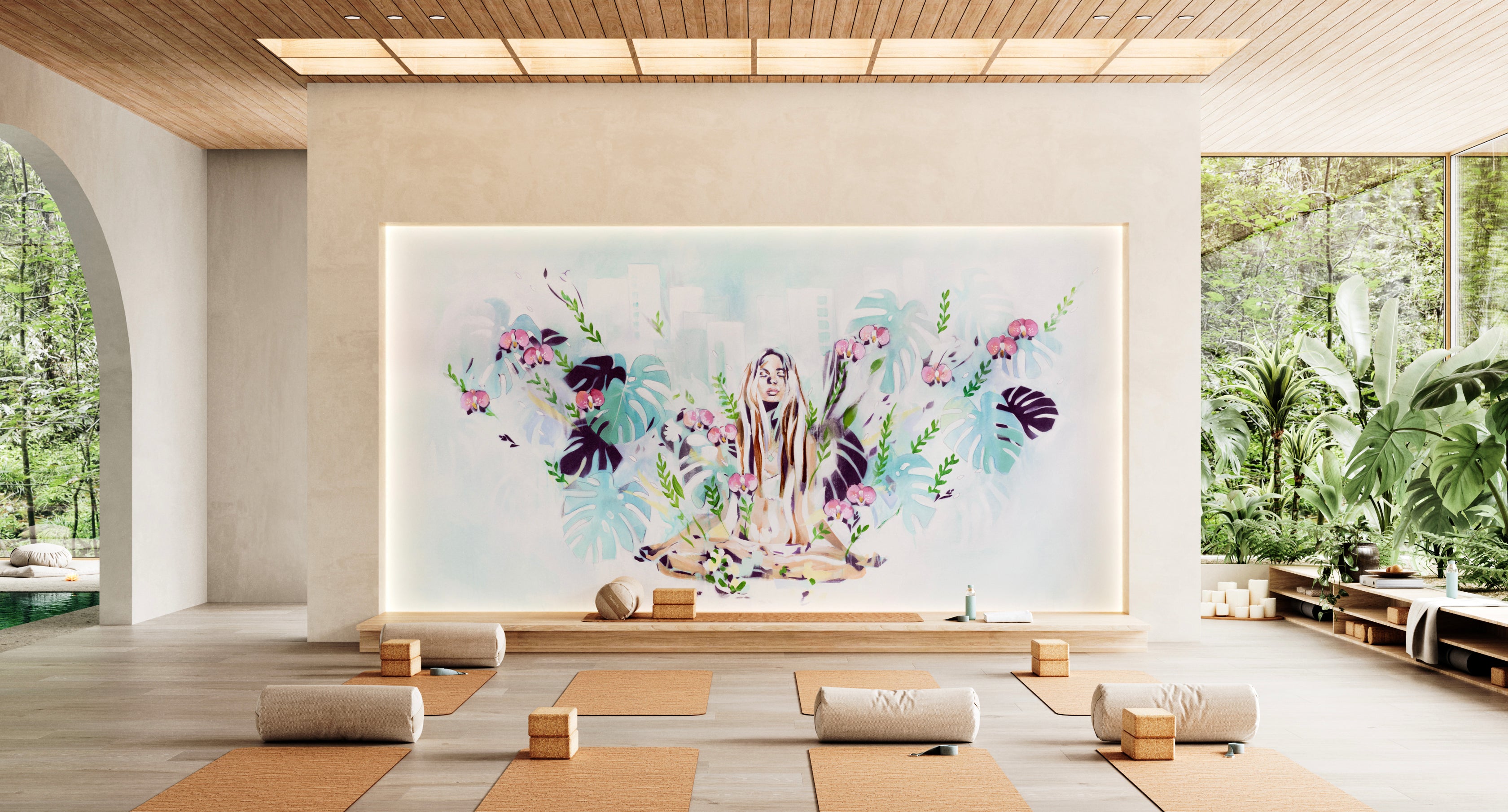Wallpaper gives a sleek look and finish to your space. Similar to a mural, the grand scale transports your clients to another world. The wallpapers have the added bonus that they can be shipped worldwide and easily installed. You have the option to work with me to create a custom painting that we make into your very own wallpaper. Or I have hand-selected some paintings that we can make at a size to fit your wall.